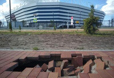 «Стадион будет финансироваться за счет федеральных ресурсов, больше 250 млн рублей в бюджете уже заложено. На содержание должно хватить», — сказал Алиханов. На вопрос о провалах грунта вокруг стадиона он ответил, что ситуация была ожидаема. «По поводу просадок за этой территорией могу сказать, что проектом предусмотрена консолидация грунтов в 90%, и в течение еще пяти лет будет происходить консолидация оставшихся 10%. То есть сантиметров двадцать вверх и вниз будут гулять. Это временно, переживать не стоит», — заявил губернатор Калининградской области.