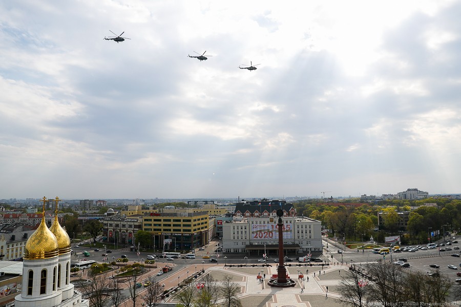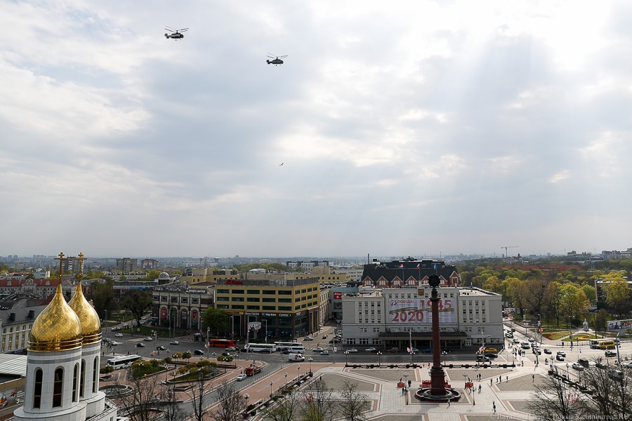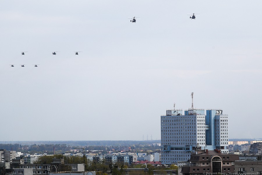 Как сообщает ТАСС, в Калининграде прошла первая репетиция воздушного парада в честь Дня Победы. В небе над центром города в едином строю пролетели 20 самолетов и вертолетов — истребители Су-27 и многоцелевые истребители Су-30СМ, фронтовые бомбардировщики Су-24М, ударные и транспортно-боевые вертолеты Ми-24 и Ми-8, корабельные противолодочные и поисково-спасательные вертолеты Ка-27 и КА-27ПС.