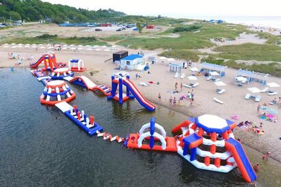 На озере в Янтарном установили надувной аквапарк (фото)