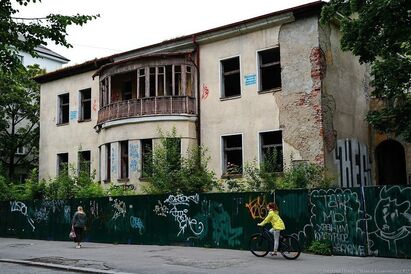 Разрушающийся особняк на улице Грекова в Калининграде, недалеко от зоопарка, построили в начале XX века. В довоенные годы строение принадлежало Биржевому обществу. Это было двухэтажное здание с высоким цоколем и мансардным этажом, полукруглым двухэтажным ризалитом со стороны улицы и большим балконом с торца. Во время войны здание было частично разрушено. После восстановления в нём разместился детский сад.