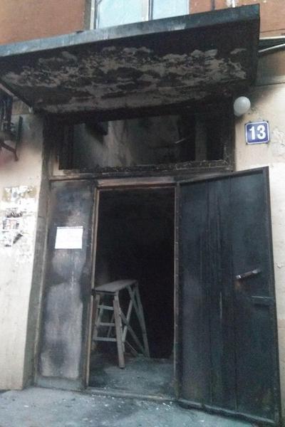 Сообщение о пожаре на ул. Пролетарской, д.13, поступило в 5.40 утра в понедельник. Горела дверь подъезда четырехэтажного жилого дома и стоявшая рядом детская коляска. Площадь возгорания составила 8 кв.м, ликвидацией занимались два пожарных расчета. Причины возгорания устанавливает полиция, в пресс-службе УМВД сообщили, что на место выезжали эксперты-криминалисты и следственно-оперативная группа.