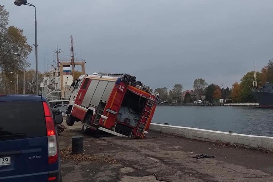 В субботу, 24 октября, на причале в Балтийске под колесами пожарной машины провалился асфальт. Об этом в своем Facebook* написала местная жительница Виктория Кутищева.