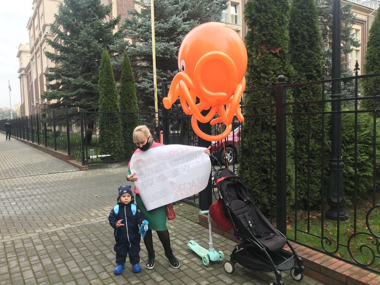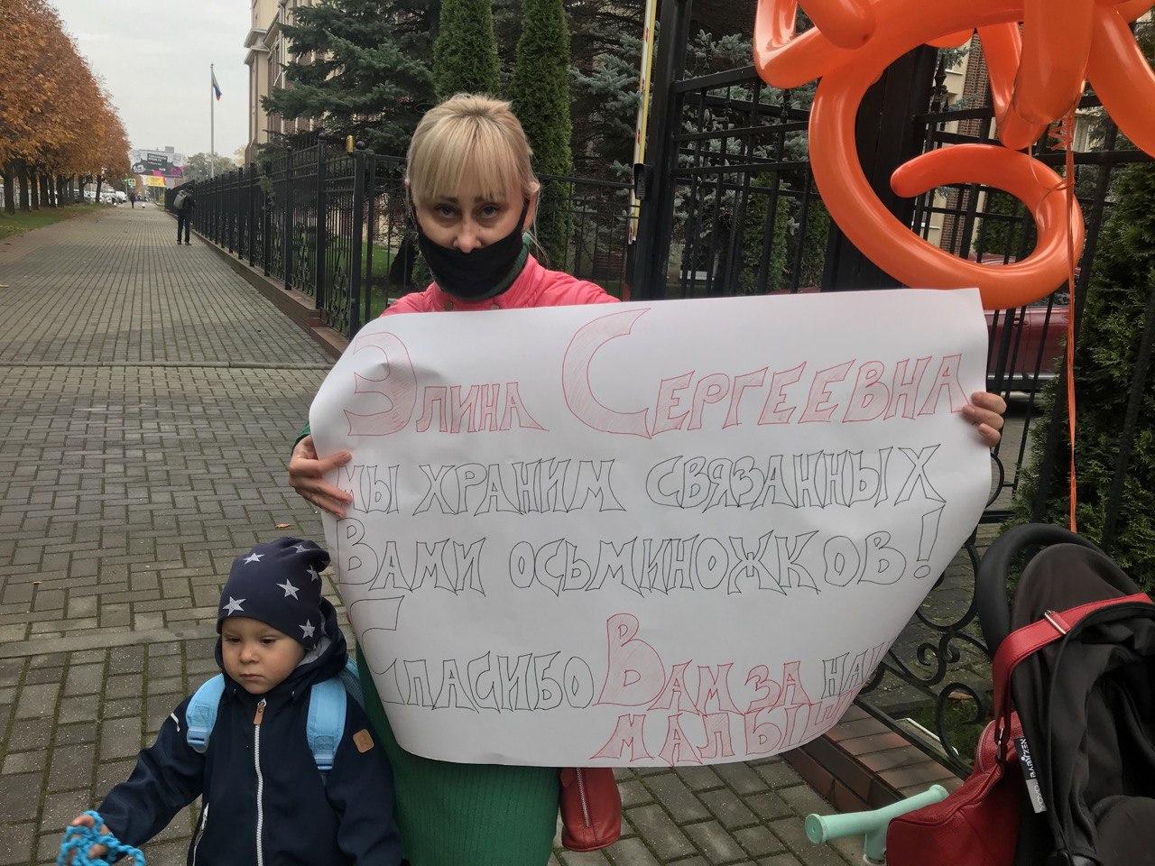 Две молодые мамы пришли утром в четверг, 29 октября, к зданию Калининградского областного суда на ул. Сергеева, чтобы поддержать неонатолога Элину Сушкевич.