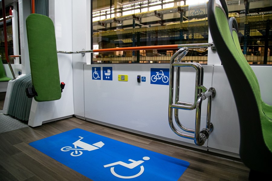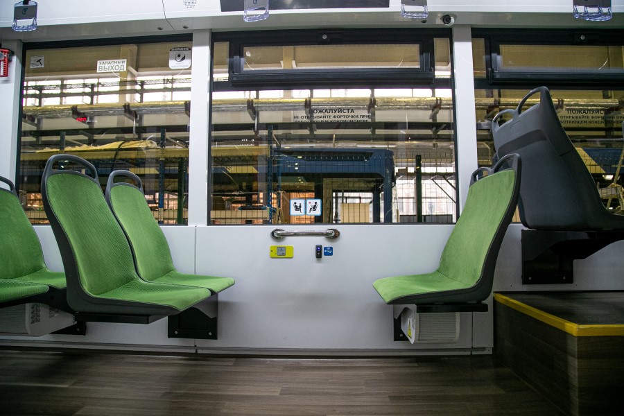Кабина водителя обладает максимальной обзорностью и эргономичностью, здесь также установлена наружная система видеоконтроля зон посадки-высадки пассажиров и мониторинга дорожной ситуации. «Кроме этого, трамвай обладает низким удельным энергопотреблением на тягу, что позволит снизить расходы на электроэнергию эксплуатирующей организации», — добавили в пресс-службе завода-изготовителя.