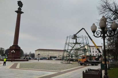 На площади Победы в областном центре рабочие начали собирать главную городскую елку. Об этом корреспонденту «Нового Калининрада» во вторник, 1 декабря, сообщил очевидец.