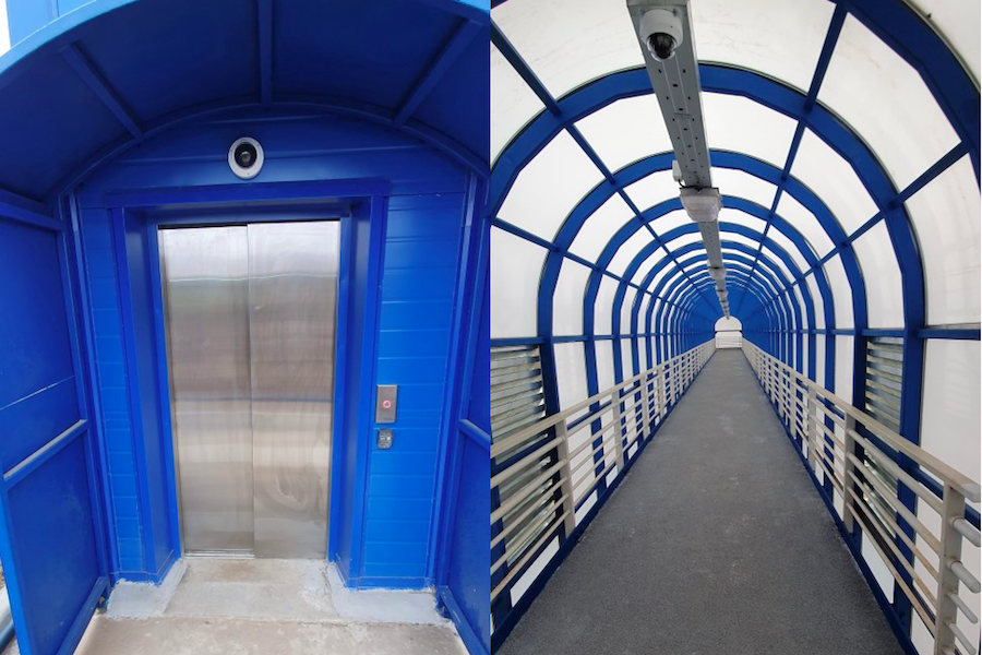 Строить переход начали в 2019 году. В Ушаково возвели сам переход, установили два павильона на автобусных остановках, поставили барьерные и пешеходные ограждения, смонтировали освещение. Впервые в области надземный переход оснащен лифтами. Также там установлены пандусы и нанесена тактильная разметка.