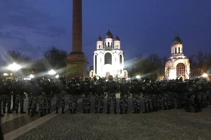Участников не санкционированной властями акции протеста, вернувшихся на площадь Победы в Калининграде, кольцом окружили силовики. Об этом сообщают с места событий корреспонденты «Нового Калининграда».