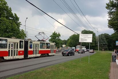 На Черняховского собралась большая пробка после столкновения «Порше» с трамваем (фото)