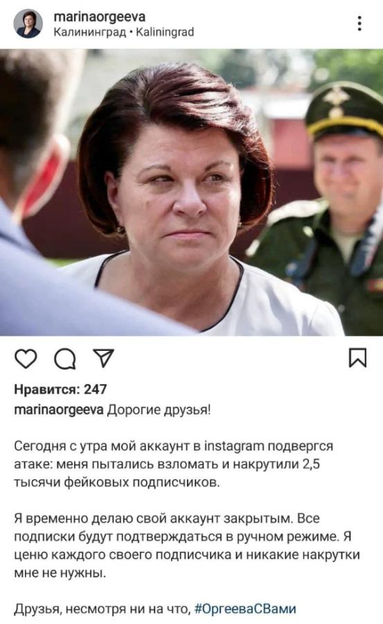 Председатель Калининградской областной Думы Марина Оргеева объявила о закрытии своей страницы в Instagram* из-за «атак». Об этом она там же и *.com/p/CSgxlDcMSOnAHuSIOIBuFjiegcMvVpG6T9G14s0/" rel="noopener nofollow">сообщила в пятницу, 13 августа.