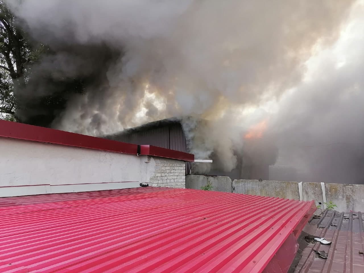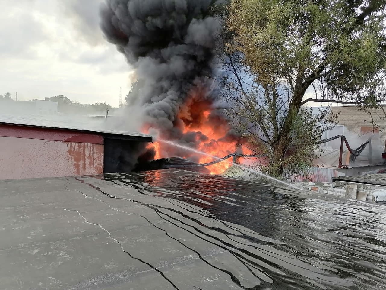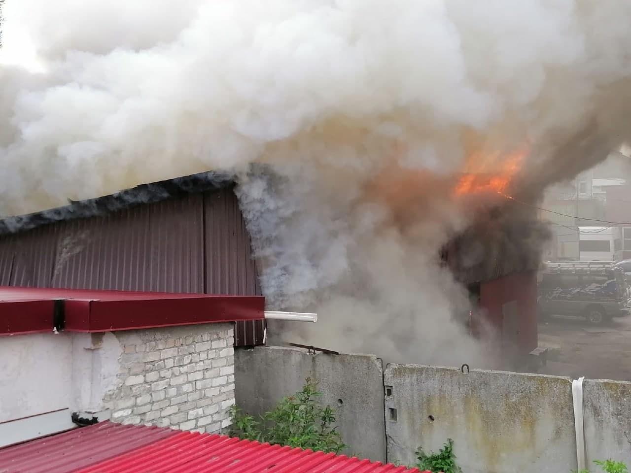 В Калининграде на улице Рыбников горит бокс автосервиса, работают пожарные (фото) (видео)