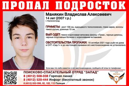 В Калининграде разыскивают 14-летнего школьника, который накануне днем ушел из дома и не вернулся. Об этом корреспонденту «Нового Калининграда» в понедельник, 11 октября, сообщили в ПСО «Запад».