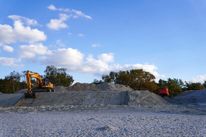 Работы по укреплению берега к западу от Зеленоградска, между границей города и речкой Алейкой, начали в конце сентября. По дюнам стала ездить и ровнять рельеф строительная техника. В местной администрации сообщили, что проект включает в себя работы по устройству коробчатых габионов и геопокрытия с целью удержания песка от эрозийного воздействия, а также высадку растений и деревьев, устойчивых к ветровым нагрузкам и удерживающих песок. На территории также запланировали обустроить 16 спусков к морю.