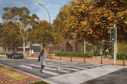 В рамках благоустройства парка проектировщики предлагают убрать парковку, расширить тротуар и оборудовать пешеходный переход на уровне тротуара.