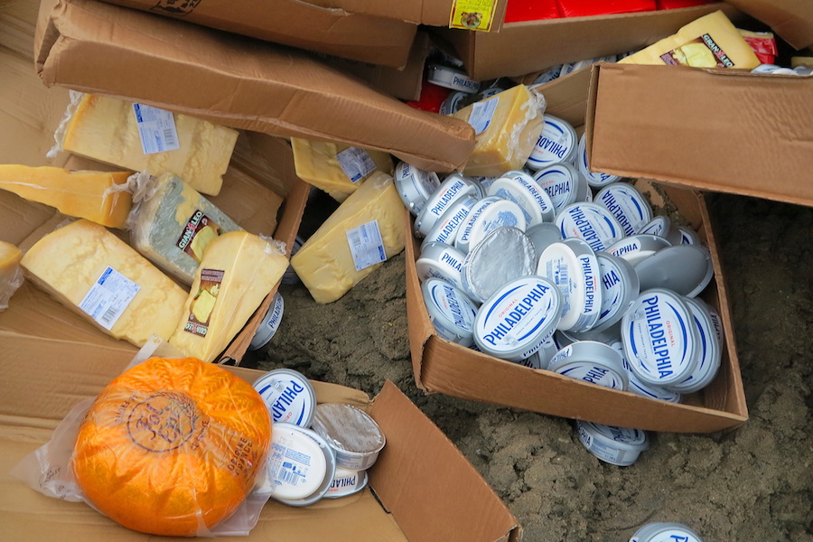 Под Калининградом раскатали бульдозером 5 тонн импортных сыров и масла (фото)
