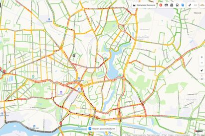 В понедельник вечером в Калининграде сложилась напряженная дорожно-транспортная обстановка, образовались пробки 9 баллов. Об этом свидетельствует специализированный сервис «Яндекса». По его данным, особенно большие заторы образовались на Московском, Ленинском проспектах, улицах Фрунзе, Черняховского, Озерова, Аллея Смелых, Литовский вал. Зафиксированы два ДТП: на Литовском валу и ул. Тельмана.