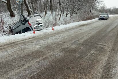Первая авария случилась в Черняховском районе в субботу в 9 часов на 2 километре автодороги «Свобода-Юдино-Заозерное-Южное». По направлению от посёлка Крушинино в сторону поселка Отрадное двигался автомобиль «Лада» под управлением 40-летнего водителя, который допустил занос автомобиля на заснеженном участке дороги, в результате автомобиль опрокинулся в кювет. Телесные повреждения получила 75-летняя пассажирка.
