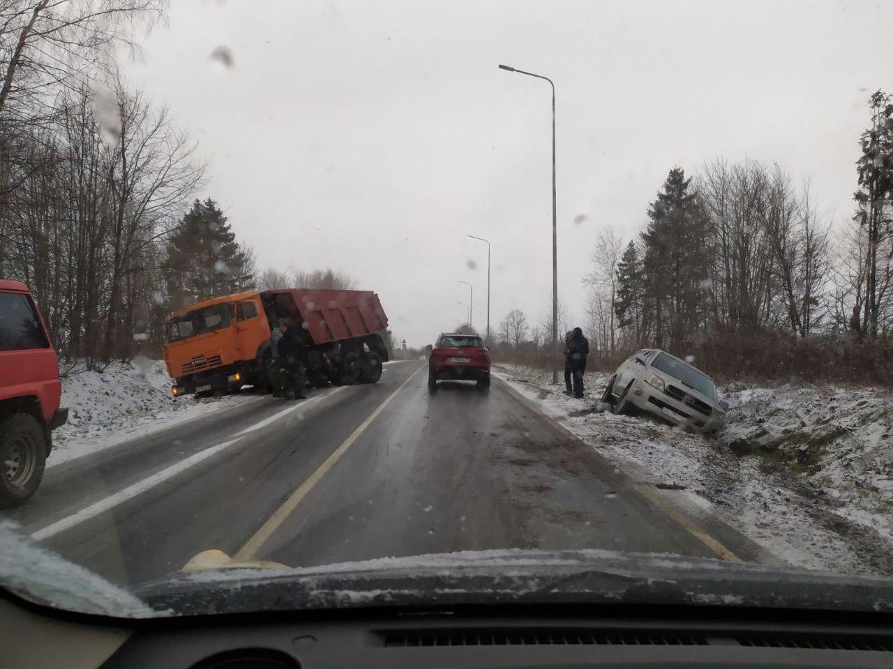 На трассе в Зеленоградском округе из-за ДТП грузовик и легковушка оказались в кюветах (фото)
