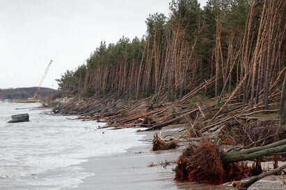 В январе на морском побережье Калининградской области зафиксировано пять штормов с максимальными порывами ветра до 26-29 м/с. Волны, достигавшие высоты до 5,5 м, повредили и частично разрушили объекты береговой инфраструктуры. По данным властей, за время штормов в среднем берег отступил на разных незащищенных участках от 0,3 до 2,7 метра. На отдельных участках размыв достигал 7,2 метра. В результате было утрачено около 15,5 гектара приморских территорий с почвенным покровом и растительностью. Кроме того, возникала угроза повреждения важных объектов инфраструктуры, энергетики и инженерных коммуникаций.