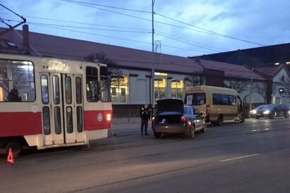 На Черняховского столкнулись маршрутка и «Ауди», заблокировав движение трамваев (фото)
