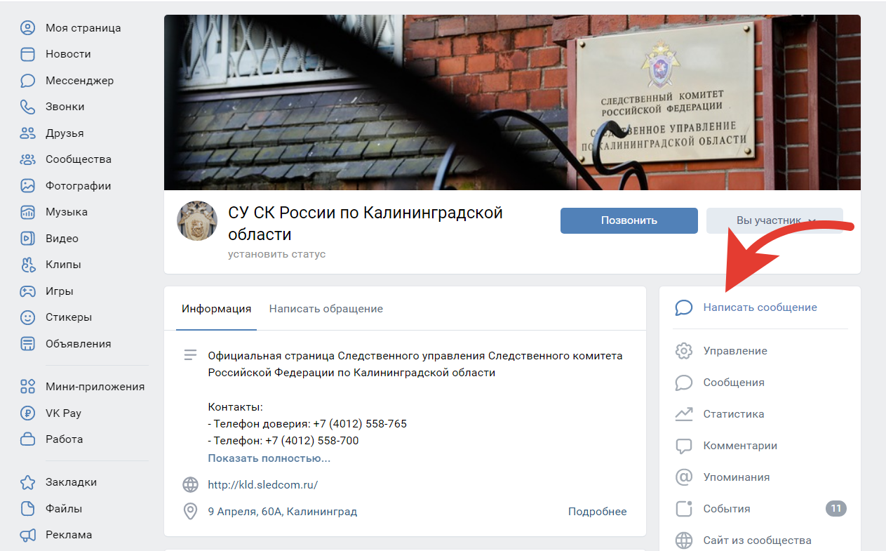 Глава калининградского СК проведет онлайн-прием во «ВКонтакте»