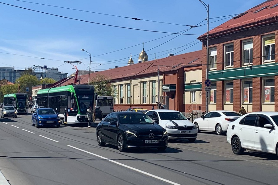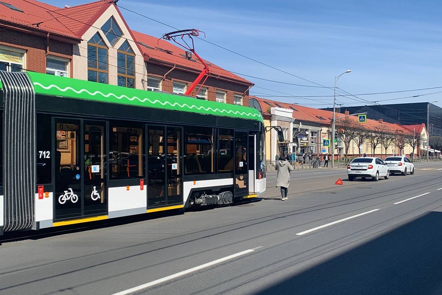 На ул. Черняховского скопились трамваи из-за ДТП на путях (фото)