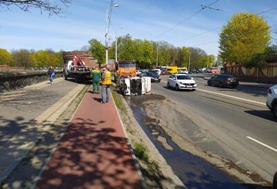 Авария произошла в крайней правой полосе по направлению к площади Победы. По предварительной информации, пострадавших нет. Перевернувшийся транспорт поднимали с помощью эвакуатора.