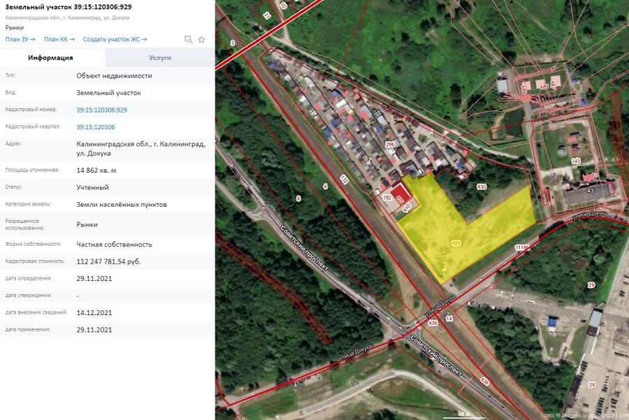 Рынок площадью 12,7 тыс. кв. метров планируют построить на участке с кадастровым номером 39:15:120306:929, расположенном на выезде из Чкаловска по ул. Докука, около железнодорожного переезда. По данным Росреестра, кадастровая стоимость участка составляет 112,2 млн рублей. Он находится в частной собственности.