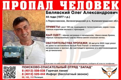 Родственники, полиция и волонтеры разыскивают 44-летнего жителя Зеленоградского района Олега Белявского, который пропал накануне днем. Об этом в среду, 31 августа, сообщает ПСО «Запад».