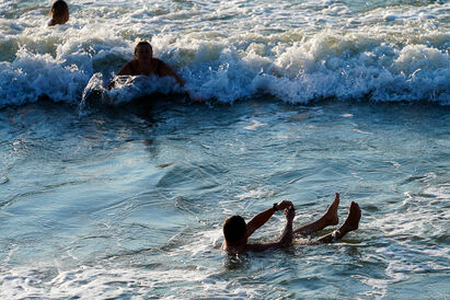 Температура воды у побережья Балтийского моря на протяжении всего месяца составляла около +21+23 градусов.