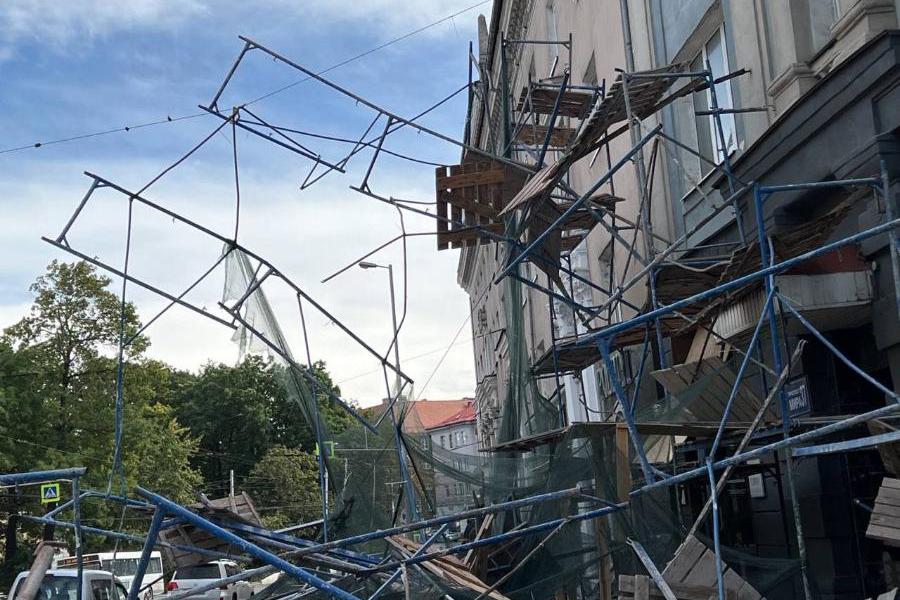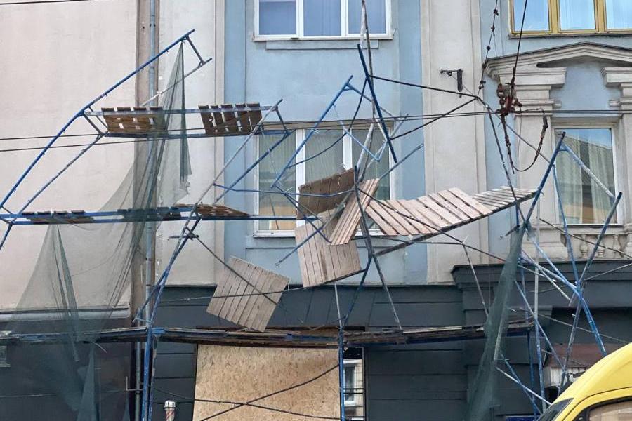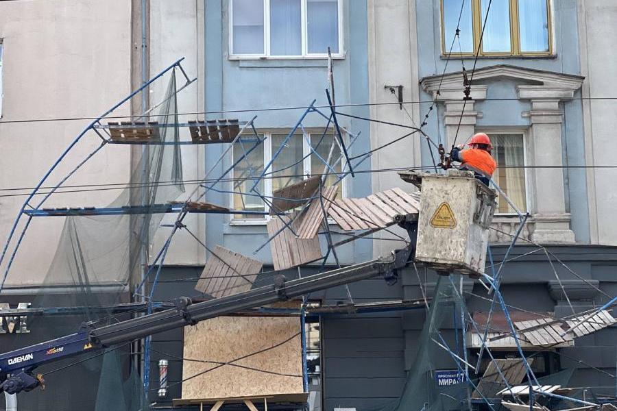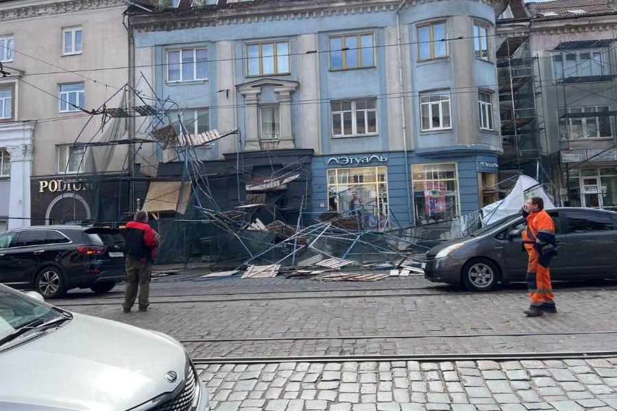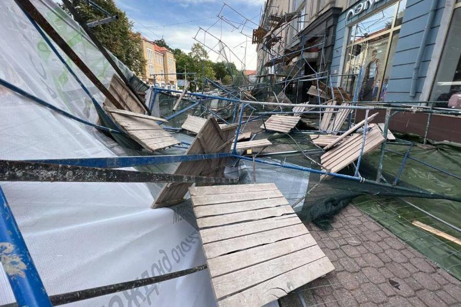 В Калининграде при ремонте исторического здания обвалились строительные леса (фото) (дополнено)