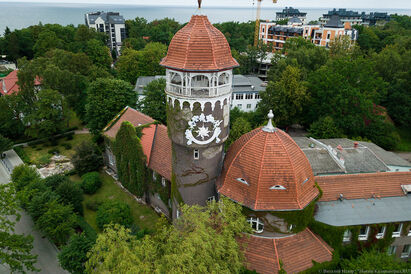 По данным сайта Prussia39, водонапорная башня и здание водолечебницы построены в Раушене в 1907-1908 годах архитектором Отто Вальтером Куккуком. Высота башни составляет 25 метров. В 1978 году на башне смонтированы солнечные часы работы скульптора Николая Фролова. В 2007 году здания признали объектами культурного наследия регионального значения. Они принадлежат Светлогорскому военному санаторию Министерства обороны России.