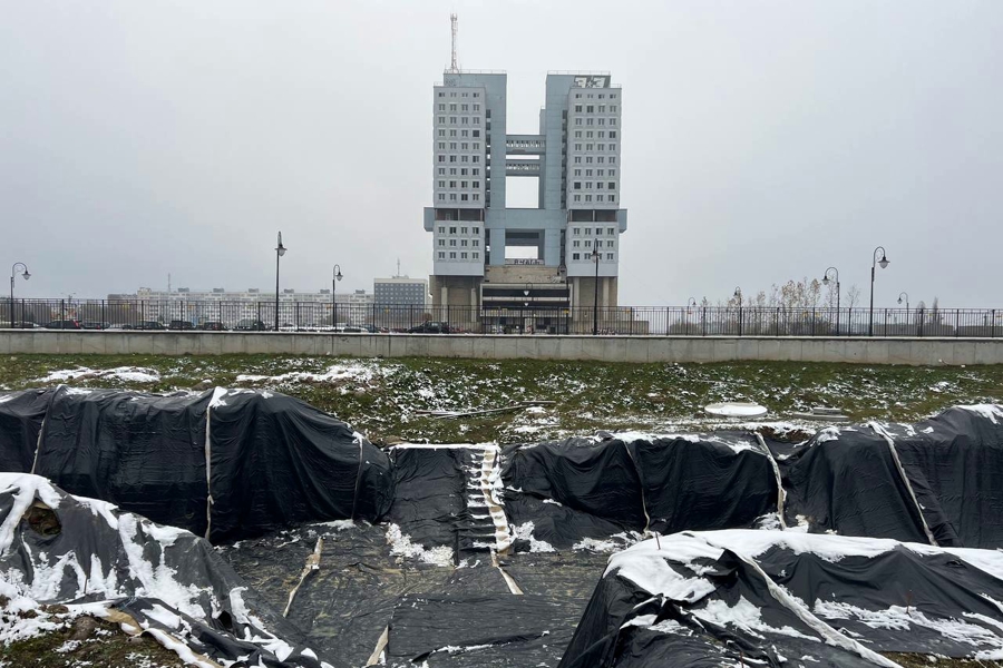 В Калининграде продолжается консервация открытой части руин Королевского замка методом «повторного погружения в грунт». Развалины уже укрыли бентонитовыми матами.
