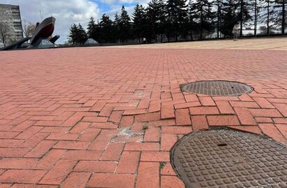 Ранее очевидцы сообщили, что пешеходная зона у памятника «пошла волнами», у отремонтированной чаши фонтана образовался провал.