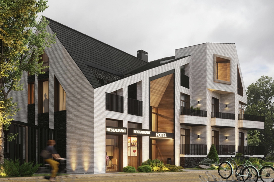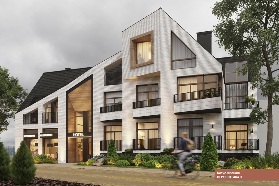 Сейчас на месте будущей гостиницы находится нежилое здание двухэтажное здание с гаражами. «Архитектурный стиль, в котором задумана реконструкция, не нарушает гармонию уже существующей застройки», — уверяют авторы проекта. На первом этаже планируют разместить рецепцию, буфет и четыре номера, на втором этаже — ещё четыре номера и помещения для персонала. Для отделки фасадов авторы намерены использовать плитку с имитацией дерева, бетонную плитку и фасадный камень.