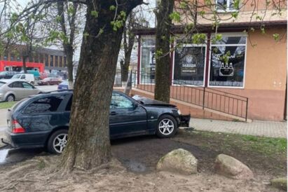 В центре Советска «Мерседес» слетел с дороги и въехал в дерево. Пострадала пассажирка (фото)