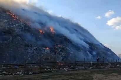 В 50 км от Калининграда горит мусорный полигон, огонь охватил 1 тыс. кв. метров (видео)