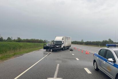 На выезде из Советска легковой «Мерседес» вылетел на встречную под грузовик (фото)