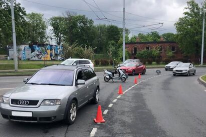 Авария произошла в 14 часов 58 минут на кольце пл.Василевского. Со стороны ул. Черняховского в сторону ул. А.Невского двигался 74-летний водитель скутера, который в районе д. 3 «А» пл. Василевского столкнулся с двигавшимся в попутном направлении в крайней правой полосе без изменения направления автомобилем «Ауди». В результате ДТП скутерист госпитализирован.