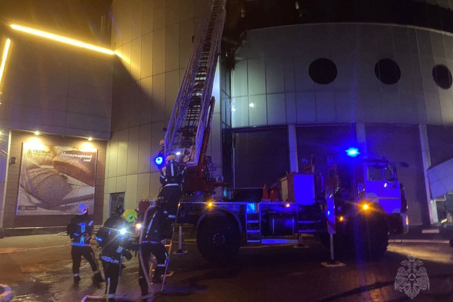 В торговом центре на третьем этаже поздно вечером в четверг, 18 мая, загорелась обшивка стен на площади 70 квадратных метров. Огонь вышел на кровлю. Из здания эвакуировали 12 сотрудников и трёх посетителей. Пострадавших нет.