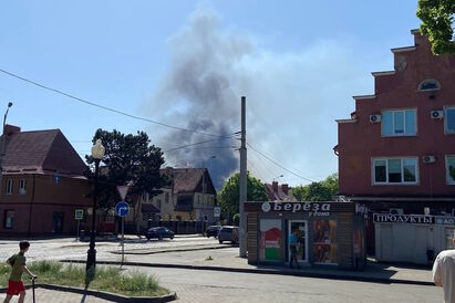Очевидцы в «Сообществе автомобилистов Калининграда и области» сообщают, что из-за пожара перекрыли движение в пос. Прегольском.