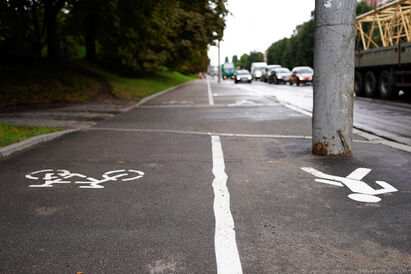 В Калининграде начали наносить разметку на тротуары для обозначения велосипедной и пешеходной части. Эти работы были анонсированы заместителем главы комитета развития дорожно-транспортной инфраструктуры мэрии города Антоном Романовым еще 30 мая. Романов утверждал, что на сегодняшний день велосипедная инфраструктура присутствует уже на 48 улицах города, но до конца года она появится ещё на восьми улицах. Более того, ранее нанесенная разметка, как уверял чиновник, будет «переосмыслена и исправлена» там, где она наносилась неудачно.