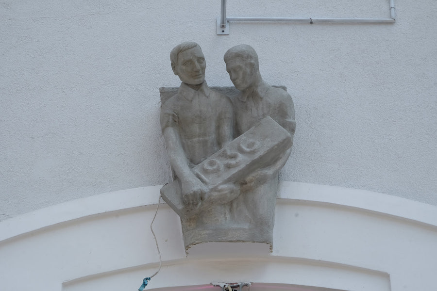 В Калининграде на фасаде дома № 145 Ленинского проспекта восстановили довоенные скульптуры. Как сообщили «Новому Калининграду» в пресс-службе Фонда капремонта, над их восстановлением (у бетонных фигур отсутствовали головы) трудились разные мастера, но работы еще не завершены.