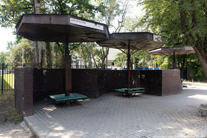 Отметим, что представители ДК не смогли тогда определиться, жаль им необычного павильона или нет. Предположительно, объект был построен в 1975 году вместе с домом культуры.