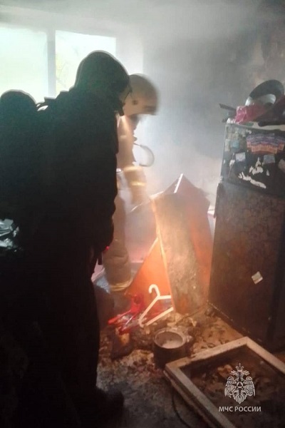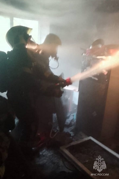 Отмечается, что пожарные были на месте через 4 минуты. В ходе разведки выяснилось, что в комнате на втором этаже горят вещи. Площадь возгорания — 6 квадратных метров. Удалось избежать распространения огня на соседние жилые помещения. Сейчас открытое горение ликвидировано.