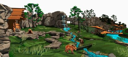 На месте бывшего вольера для лосей планируют построить пространство для содержания волков и медведей, домик юного натуралиста, искусственный водопад и здание «Грот».