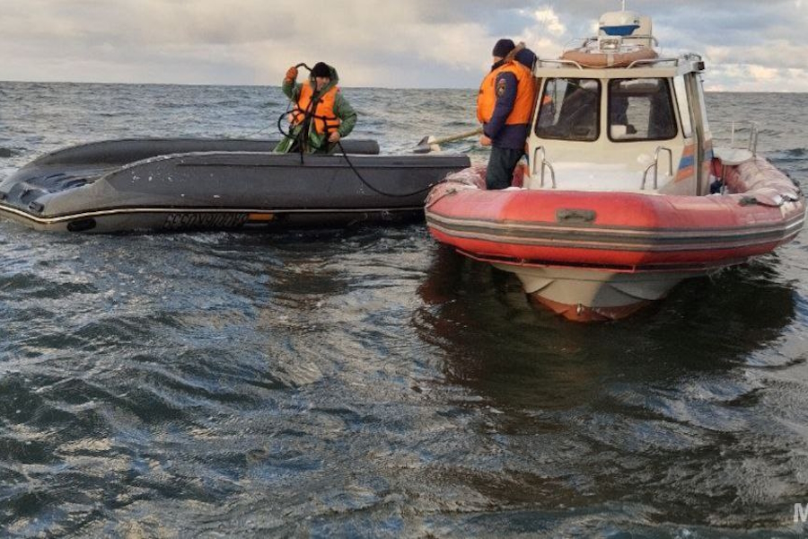 Сотрудники МЧС спасли в открытом море у Балтийска пятерых рыбаков на перевернувшейся лодке (фото)