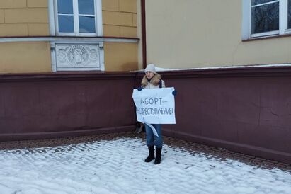 В Калининграде 4 декабря прошел одиночный пикет против запрета абортов. Активистка с плакатом «Аборт — не преступление» стояла у Драматического театра.