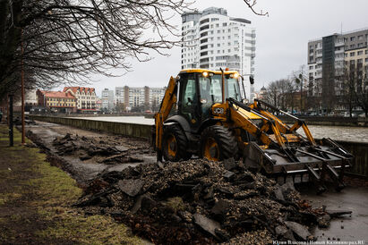 В Калининграде на острове Канта при помощи строительной техники начали разбирать набережную. В четверг асфальт был вскрыт со стороны острова, выходящей на Рыбную деревню. В пресс-службе Кафедрального собора «Новому Калининграду» пояснили, что работы проводятся в рамках благоустройства второй очереди (подрядчик должен построить новые набережные).