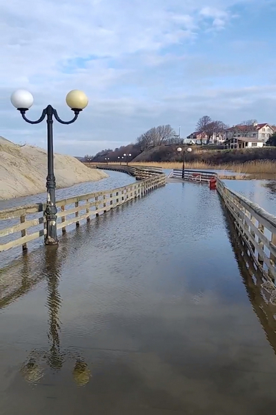 Расположенная над озером часть променада в Янтарном ушла под воду. Об этом «Новому Калининграду» рассказал очевидец. предоставивший фотографии.