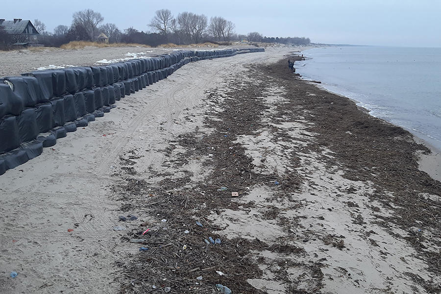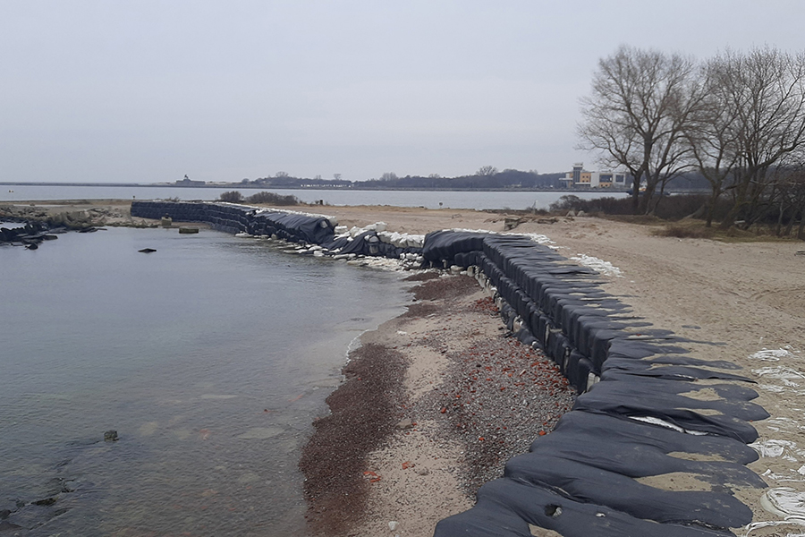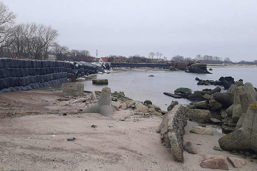 В начале февраля в результате непогоды на морском побережье Балтийской косы в районе форта «Западный» произошёл размыв пляжей. Волны вместе с наносами, состоявшими преимущественно из кусков кирпича, камней и бетонных элементов, повредили северную часть искусственной авандюны. Обрушились четыре фронтальных мешка «гео-бэг», которые ранее были смещены и частично нависали над пляжем, однако конструкция находится в работоспособном состоянии и продолжает защищать часть населённого пункта от затопления.